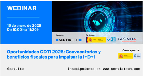 Webinar – Oportunidades CDTI 2026: Convocatorias y beneficios fiscales para impulsar la I+D+i. 16 enero 2026